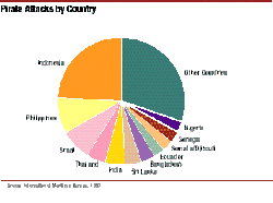 L’Indonésie est le pays de la région le plus touché par ce phénomène, avec 40 % des cas de piraterie recensés. La police maritime indonésienne conseille à tous les navires de mouiller dans la dizaine de zones surveillées par les forces de sécurité afin d’être mieux protégés[17]. Suivent la Malaisie et le Vietnam[18].