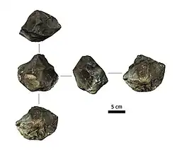 De 2006 jusqu'à aujourd'hui, plus de 300 artéfacts taillés à partir de petits galets de silex ont été trouvés, ramassés en position secondaire dans les zones limitrophes du site. Les chaines opératoires, bien qu'incomplètes, attestent de toutes les phases de la production, du décorticage jusqu'à l'abandon du nucléus. Les méthodes de débitage adoptées ont pour objectif l'obtention d'éclats avec au moins un bord fonctionnel. Les galets de moyennes et grandes dimensions ont été exploités avec une méthode de débitage opportuniste qui prévoit l'exploitation de plusieurs surfaces du plan de frappe orthogonales, au moyen d'un débitage unipolaire. Les nucléus ont été exploités jusqu'à l'épuisement total de la matière première, dans la majeure partie des cas. Les galets de petite dimension ont été exploités selon une modalité centripète et les produits obtenus (éclats) présentent des morphologies "standardisées" : éclats de forme triangulaire avec une pointe déjetée et un débordement opposé à la pointe.
