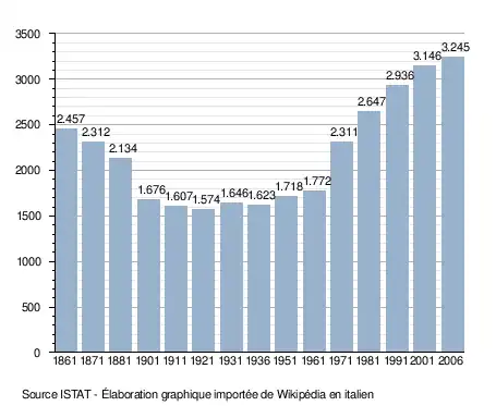 - ↑ (it) Popolazione residente e bilancio demografico sur le site de l'ISTAT.