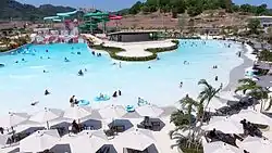 Espagne) - La plus grande piscine à vagues d'Europe avec 5 000 m2[15] - Piscine à vagues à Aquaparc (