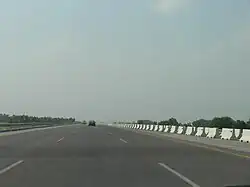 Piste d'atterrissage sur l'autoroute M-2 (en) du Pakistan avec des terre-pleins amovibles.