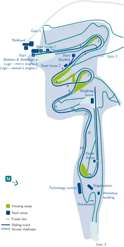Construite en 1977, la maison de départ a été modifié entre-temps pour la luge féminine, ainsi que celle des hommes en 2006. Ceci a été fait avec l'autorisation de la FIBT et de la Fédération internationale de luge de course. Par la même occasion, la zone de stockage des engins est aujourd'hui complètement recouverte, de nouveaux vestiaires ont fait leurs apparitions ceci dans le but que les équipes puissent préparer au mieux la compétition. La piste a accueilli les premiers championnats du monde de bobsleigh féminin en 2000.