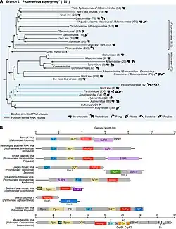 Pisuviricota est un embranchement de virus à ARN, qui comprend tous les virus à ARN à simple brin à polarité positive et ceux à double brin, qui infectent les eucaryotes, et ne sont pas membres des embranchements des Kitrinoviricota, Lenarviricota ou Duplornaviricota[2].