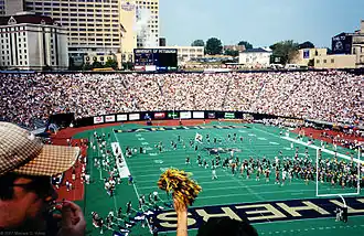 États-Unis. Le stade a accueilli pendant la majeure partie du XXe siècle des matchs de football américain et des compétitions d'athlétisme.
