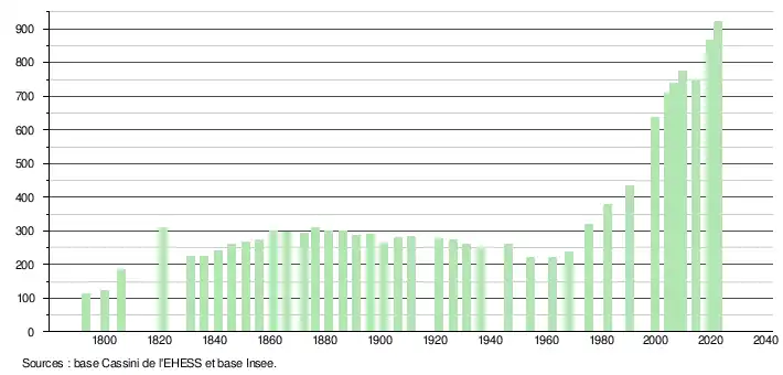 - ↑ Fiches Insee - Populations de référence de la commune pour les années 2006, 2007, 2008, 2009, 2010, 2011, 2012, 2013, 2014, 2015, 2016, 2017, 2018, 2019, 2020, 2021 et 2022.