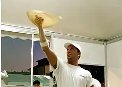 C'est une forme de jonglage où l'on fait voltiger des disques de pâte à pizza, de différentes tailles (les plus larges pouvant atteindre jusqu'à 2 mètres de diamètre) qui s'apprend par l'entraînement, éventuellement à l'aide de « pâtons » en plastique siliconé ; les pâtes utilisées recourent du reste à des recettes spécifiques.