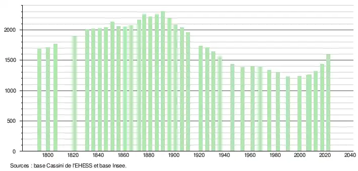 - ↑ Fiches Insee - Populations de référence de la commune pour les années 2006, 2007, 2008, 2009, 2010, 2011, 2012, 2013, 2014, 2015, 2016, 2017, 2018, 2019, 2020, 2021 et 2022.