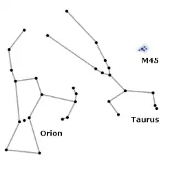 Pour remonter à des temps connus, le groupe M 45 tenait aux temps antiques un rôle important pour l’établissement des calendriers grâce à la combinaison de deux éléments remarquables. Le premier, qui est toujours valable, est son aspect unique et parfaitement repérable sur la voûte céleste près de l’écliptique. Le second, primordial pour les Anciens, est qu’au milieu du IIIe millénaire AEC, cet astérisme marquait le point vernal. C’est d’ailleurs à ces temps-là que remonte la première occurrence du nom de M 45, soit kà-ma-tù = mul.MUL[2][pas clair].