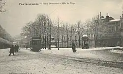 À partir de 1896 et jusqu'à 1953, la place est desservie par la ligne du tramway de Fontainebleau, le long de la rue Denecourt[10].