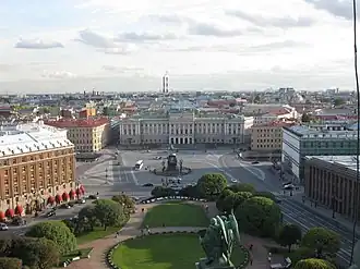 La place Saint-Isaac est une vaste place située entre le palais Marie et la cathédrale Saint-Isaac qui la sépare de la place du Sénat. La place est occupée en son centre par un monument équestre représentant le tsar Nicolas Ier.