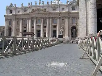 L'endroit où a eu lieu la tentative d'assassinat de Jean-Paul II est indiqué, sur le pavement de la place Saint-Pierre, par une petite plaque blanche[1]. Les barrières en bois sont utilisées pour compartimenter les foules.
