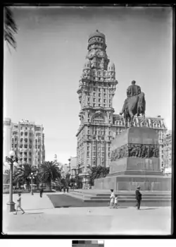 - Le palais Salvo : situé du côté est, à l'angle de la Circunvalation Plaza Independencia et de l'Avenida 18 de Julio, a été construit dans les années 1920 dans le style art déco[8]. Lors de sa construction, il fut le plus haut bâtiment d'Amérique Latine[9]. Au rez-de-chaussée se trouvait le café La Giralda, où La Cumparsita, un tango créé par l'Uruguayen Gerardo Matos Rodríguez (es), l'un des tangos les plus célèbres, a été joué pour la première fois[10] ;