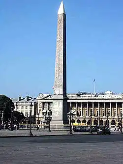 En 1831, le vice-roi d'Égypte, Méhémet Ali, offre à la France les deux obélisques qui marquent alors l'entrée du temple de Louxor à Thèbes. Seul le premier d'entre eux sera transporté vers la France et arrivera à Paris le . C'est Louis-Philippe qui décide de l'ériger sur la place de la Concorde où « il ne rappellera aucun événement politique ». L'opération, véritable prouesse technique, est réalisée le sous la direction de l'ingénieur de la marine Apollinaire Lebas, en présence de plus de 200 000 personnes. Le roi et la famille royale, incertains du succès de l'opération, ont préféré y assister depuis les salons de l'hôtel du Garde-meuble, ne paraissant sur le balcon que pour recueillir les applaudissements de la foule au moment précis où le monolithe se dresse à la verticale.
