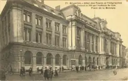 À l’Ouest de la place se trouve le Centre Monnaie qui remplace la Grande-Poste centrale de Bruxelles depuis 1971. Haut de 63 mètres, cet immeuble abrite outre, le centre commercial de la Monnaie, les services administratifs de la ville de Bruxelles, ainsi qu’un accès au métro et quatre niveaux de parking souterrains[39].