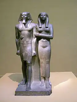 Statue de Mykérinos et Khâmerernebty II. - Nebesneith, épouse de Houni ;