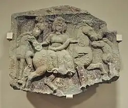 La mythologie perse compte elle aussi des déesses et autres figures féminines associées au cheval, entre autres Anāhitā, déesse de l'eau et femme militaire, qui conduit un chariot tiré par quatre chevaux[25]. Dans la mythologie grecque puis romaine, la déesse agricole et de la fertilité Déméter est parfois figurée avec une tête de cheval[D 2].
