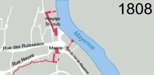 Le Pont Neuf est finalement construit de 1812 à 1824[1], et le cours de la Mayenne est dévié, libérant le Cours de la Résistance et la rue du Vieux-Saint-Louis. Le détournement de la rivière permet aussi l’agrandissement de la place de la Chiffolière vers l'est[1]. L'endroit est désormais situé sur un axe très emprunté, à la jonction entre la rue de la Paix et la rue de Joinville (actuellement rue du Général de Gaulle), qui se trouvent alors sur la route qui relie Paris à Brest. En outre, la poissonnerie est détruite dès 1807[2].