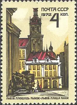 - (en) Cet article est partiellement ou en totalité issu de l’article de Wikipédia en anglais intitulé « Market Square (Lviv) » (voir la liste des auteurs).