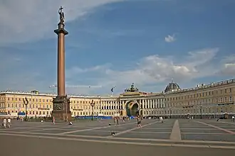 À l'est de la place se dresse un bâtiment construit sous la direction d'Alexandre Brioullov pour abriter l'état-major de la Garde impériale (1837-1844). Le côté ouest donne sur la place de l'Amirauté.