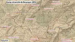 Un siècle après et durant une centaine d'années (de la fin du XVIIIe à la fin du XIXe siècle), la construction d'un ensemble d'ouvrages détachés (redoutes, forts, batteries, abris), implantés de un à dix kilomètres du centre-ville, permet de réaliser un camp retranché. Ce dernier fait partie du système Séré de Rivières, un vaste ensemble de fortifications couvrant particulièrement l'Est de la France. La place de Besançon devient à la fin du XIXe siècle, un élément de seconde ligne de la « barrière de fer »[a] ainsi constituée.