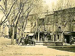 Mais c'était loin d'être suffisant. Au milieu du XVIIIe siècle, Jean-Baptiste Franque dressa à son tour des plans pour agrandir la place sur lesquels il prévoyait, de part et d'autre, des façades symétriques[22]. Les travaux commencèrent, la boucherie de Mignard étant démolie et transférée rue du Vieux-Sextier, mais ils furent abandonnés sur ordre des consuls en 1754[23]. Ils ne reprirent qu'en 1791[23]. Au cours de la Terreur, la guillotine fut installé sur la Place du au avant d'être déplacée sur celle du Palais[23]