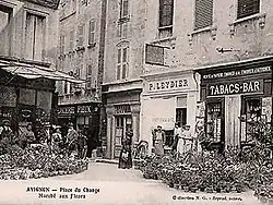 Ce lieu fut, sous le temps des papes d'Avignon, le rendez-vous des changeurs qui comptaient 17 loges en 1328. Ils y possédaient une bourse, dite Diamant ou Rodel, pour le commerce des monnaies, des lingots et des pierres précieuses[7]. En 1351, ce lieu était nommé « rue du Grand Change » (Carreiria Magnorum Camborium)[8]. À la demande du cardinal de Foix, légat pontifical à Avignon, le Conseil de Ville la fit agrandir entre 1448 et 1458[9]. Cet élargissement imposa la démolition de la bourse des changeurs (le Rodel) qui disparut en 1457[10].