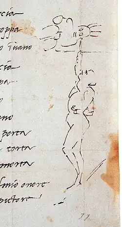 - ↑ Adriano Marinazzo, « Ipotesi su un disegno michelangiolesco del foglio XIII, 175v, dell’Archivio Buonarroti », Commentari d'arte, nos 52-53, (lire en ligne)
