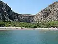 L'endroit est une destination touristique populaire en raison de la rivière Megalopotamos qui s'écoule à l'arrière de la plage, de la palmeraie dans la gorge et de la plage de sable aux eaux claires. Sur la plage, se trouve un rocher en forme de cœur, « La pierre des amoureux » selon les locaux[2].