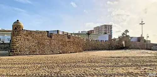 - (es) Cet article est partiellement ou en totalité issu de l’article de Wikipédia en espagnol intitulé « Playa de La Caleta (Cádiz) » (voir la liste des auteurs).