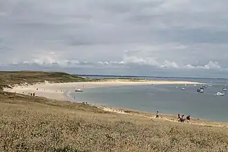 Cette plage de sable s'étend sur environ 2,20 km, entre l'ancien port et la pointe d'En Tal[note 1].