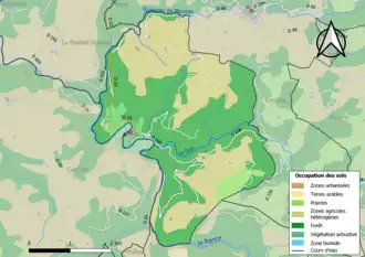 L'occupation des sols de la commune, telle qu'elle ressort de la base de données européenne d’occupation biophysique des sols Corine Land Cover (CLC), est marquée par l'importance des forêts et milieux semi-naturels (57,8 % en 2018), une proportion sensiblement équivalente à celle de 1990 (57,6 %). La répartition détaillée en 2018 est la suivante : forêts (53,7 %), zones agricoles hétérogènes (39,3 %), milieux à végétation arbustive et/ou herbacée (4 %), prairies (3 %)[19].