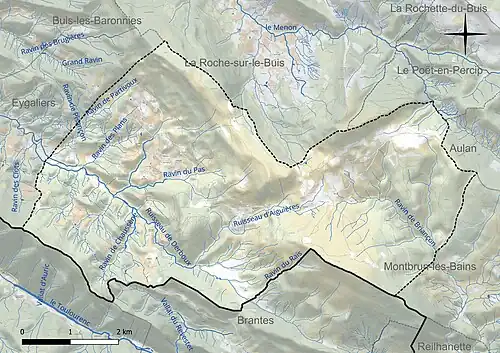 Les communes limitrophes sont Aulan, Eygaliers, Montbrun-les-Bains, Le Poët-en-Percip, La Roche-sur-le-Buis, Brantes et Saint-Léger-du-Ventoux.