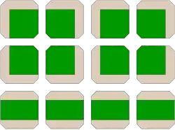 - ↑ contrairement à la croyance populaire qui donne une superficie de 1 hectare par îlot