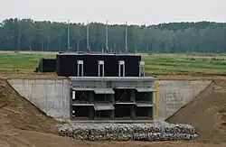 Lorsqu'une rivière est proche d'une zone d'inondation, la hauteur de la digue est ramenée à +6,8 m TAW avec une digue circulaire autour de ladite zone.