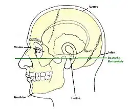 Le plan relie trois points : d'une part les marges supérieures des deux conduits auditifs externes (dénommées en anthropologie Po ou porion) et le point le plus bas du rebord inférieur de l'orbite (dénommé Or ou orbital) gauche[1].