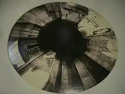 Monté sur l'axe rotatif d'un solide trépied, une planchette photographique produisait des photographies à effet de distorsion anamorphique résultant d'une prise de vue à 360 degrés[1].