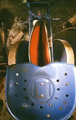 Planteuse de pommes de terre à deux rangs ancienne, portée pour tracteur.