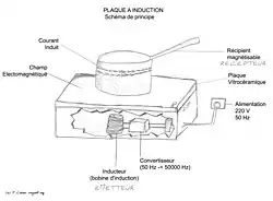 Les plaques à induction sont des plaques de cuisson fonctionnant à l'électricité et dont le mécanisme de chauffage est basé sur le principe des pertes par courants de Foucault et par hystérésis, et utilise donc le principe d'induction électromagnétique.