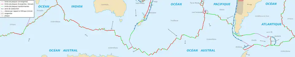 | Frontières | Dorsales du Sud-Ouest de l'océan Indien, du Sud-Est de l'océan Indien, Pacifique-Antarctique et du Chili |