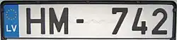 Les plaques d'immatriculation lettones sont composées des deux lettres « LV » (Latvia) et du symbole de l'Union Européenne. Les combinaisons alphanumériques sont formées de 5 caractères en tout, traditionnellement de 2 lettres; un tiret; trois chiffres, mais on peut retrouver deux combinaisons: