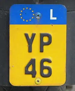 Le , le format actuel est introduit, conservant les caractères noirs sur fond jaune[3] : Eurobande bleue avec les 12 étoiles européennes et lettre L à gauche puis les 6 caractères (rendant inutile l'apposition de l'autocollant « L »), débutant par deux lettres suivies de 4 chiffres (AB1234). Elles remplacent les anciennes plaques à 5 caractères aux formats AB123 ou A1234. D'autres formats ont été utilisés par le passé[4] : 3 chiffres (123) ou 2 chiffres et 2 lettres (12AB).