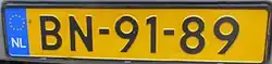 | 1999–2008 | 6 | En 2000, le style de licence d'admission contrôlées (GAIK; Gecontroleerde Afgave en Inname van Kentekenplaten) a commencé avec la série "F" de cette série. Toutes les plaques d'immatriculation, à l'exception de certains enregistrements d'anciens combattants, ont été mandatées pour passer aux plaques GAIK.