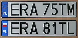 Les plaques d'immatriculation polonaises actuelles sont de couleur blanche avec un liseré noir. Les caractères sont également noirs. Voici des exemples ci-dessus :
