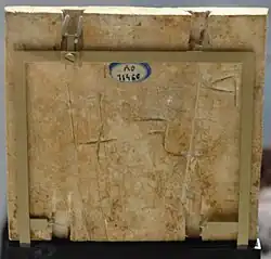 Plaque représentant une scène d'inspiration égyptienne est une plaquette en ivoire haute de 9,2 centimètres et large de 8,6 centimètres, représentant deux génies coiffés du Pschent, une couronne double pharaonique, qui déploient symétriquement leurs ailes de part et d'autre d'une enfant (Horus[1]) sortant d'un lotus[2]. Cette plaquette devait sans doute orner un meuble de luxe en bois[1].