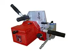 La plaqueuse de chant portative est utile pour le collage de chant sur des pièces de forme arrondies. Contrairement aux machines stationnaires il n'y a pas de chaîne d'entrainement, c'est à l'opérateur de faire avancer la machine autour de la pièce[3].