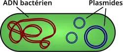 Le terme plasmide fut introduit par le biologiste moléculaire américain Joshua Lederberg en 1952[2]. Un plasmide porte un ensemble de gènes permettant sa propre réplication, et fréquemment des gènes d'antibiorésistance qui apportent un avantage aux bactéries qui les contiennent.