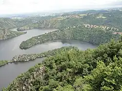 Le barrage à l'origine de ce paysage, du fait de la distance (2 km) et des méandres qui occultent une certaine visibilité horizontale, est difficilement perceptible. Saint-Just-Saint-Rambert en extrémité, marque le début de la plaine du Forez.