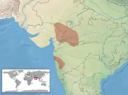 Cette espèce est endémique d'Inde. Elle se rencontre dans les États de Gujarat, Madhya Pradesh et Maharashtra[1].