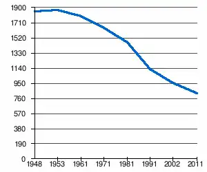 | 1 852 | 1 866 | 1 804 | 1 641 | 1 466 | 1 127 | 953[2] | 833[1] |