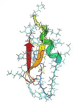 - ↑ (en) Kalyaneswar Mandal, Brad L. Pentelute, Valentina Tereshko, Vilasak Thammavongsa, Olaf Schneewind, Anthony A. Kossiakoff et Stephen B. H. Kent, « Racemic crystallography of synthetic protein enantiomers used to determine the X-ray structure of plectasin by direct methods », Protein Science, vol. 18, no 6, , p. 1146-1154 (PMID 19472324, PMCID 2774425, DOI 10.1002/pro.127, lire en ligne)